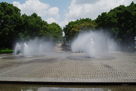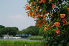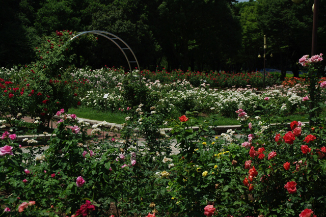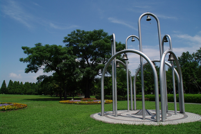四季折々の花や自然、大噴水、そして体育館(室内広場)を始めとしたスポーツ施設を背景に